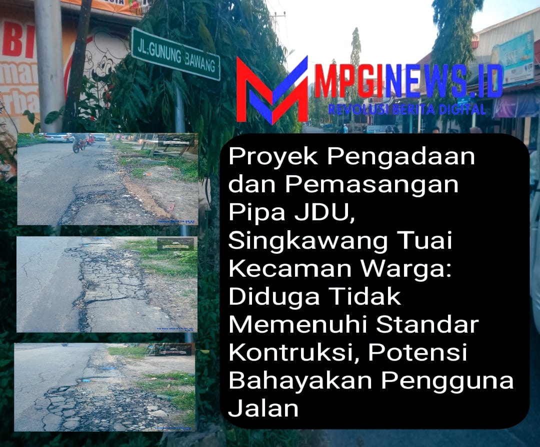 Singkawang, Kalbar* Nadi Berita*Proyek Pengadaan dan Pemasangan Pipa Jaringan Distribusi Utama (JDU) yang berlokasi di Jalan Kridasana hingga Jalan GM Situt (depan kiri Hotel Mahkota), Kota Singkawang, menuai kecaman keras dari warga dan masyarakat sekitar. Proyek yang bersumber dari Anggaran Pendapatan dan Belanja Daerah (APBD) Tahun Anggaran 2025 tersebut diduga dikerjakan tidak sesuai standar teknis konstruksi jalan dan berpotensi membahayakan keselamatan pengguna jalan.