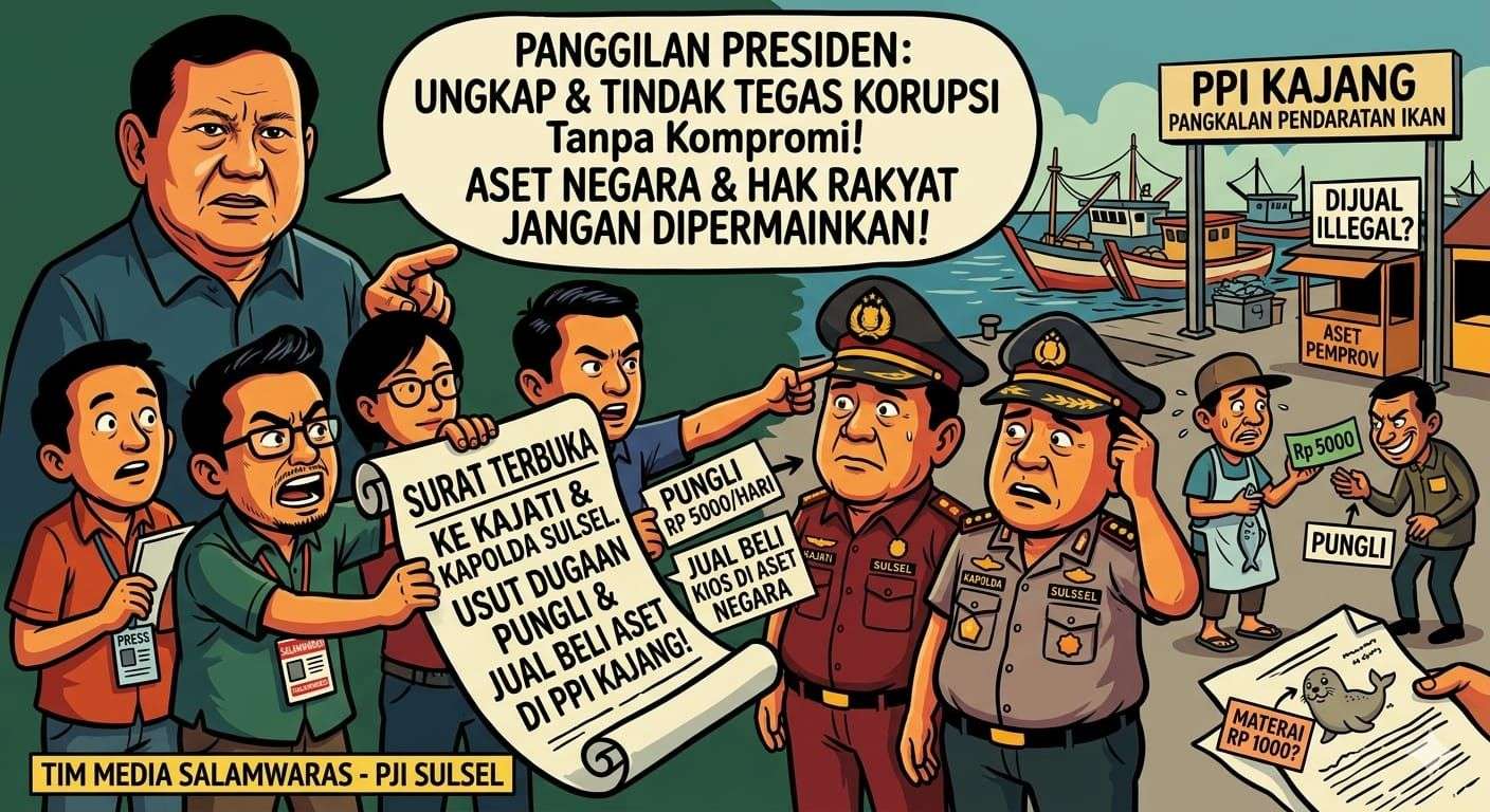 Nadiberita.id,Bulukumba —Dugaan praktik pungutan liar (pungli) serta indikasi jual beli aset negara di kawasan Pangkalan Pendaratan Ikan (PPI) Kajang, Kabupaten Bulukumba, memasuki babak baru. Tim Media Salamwaras, yang tergabung dalam Persatuan Jurnalis Indonesia (PJI) Sulawesi Selatan, secara resmi melayangkan surat terbuka kepada aparat penegak hukum di daerah.